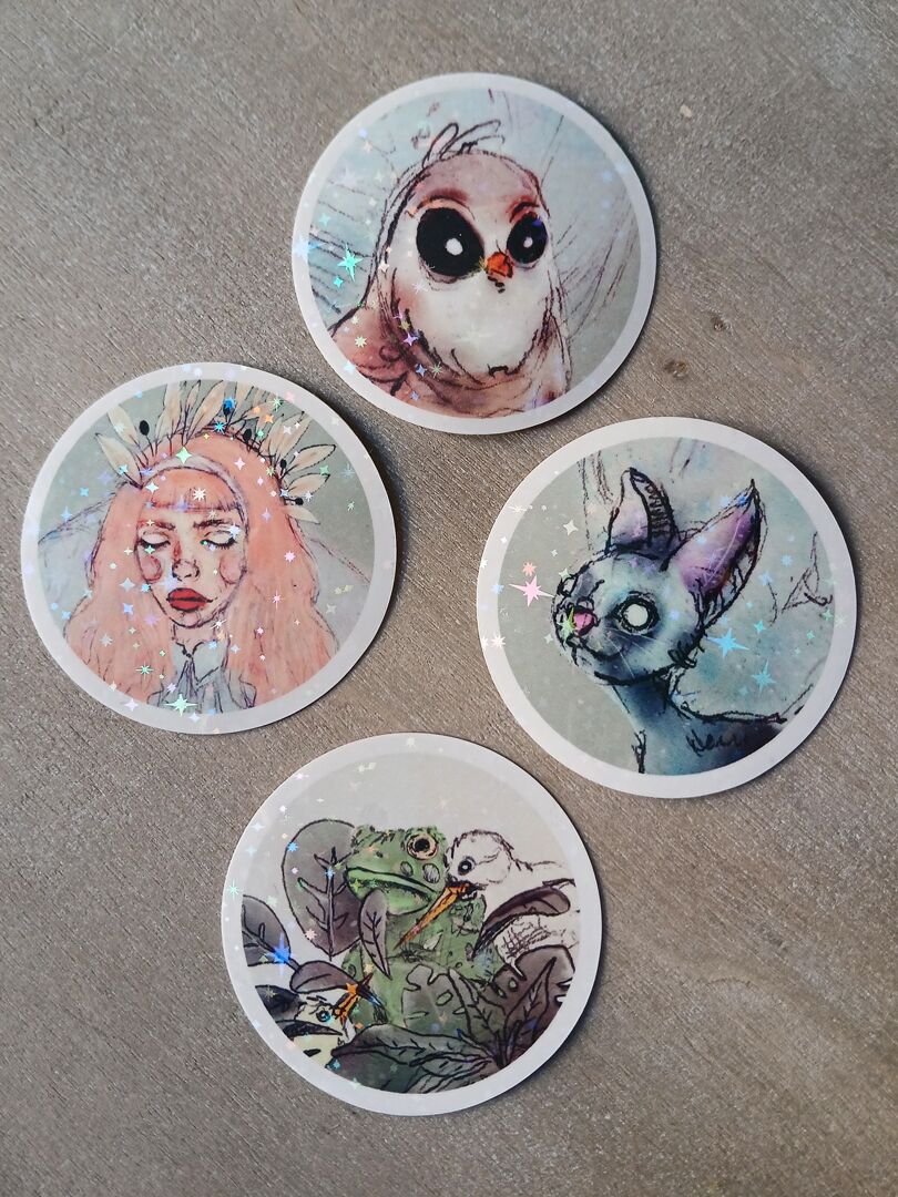 4 Stickers pailletés Diamètre du motif : 5,5 cm environ